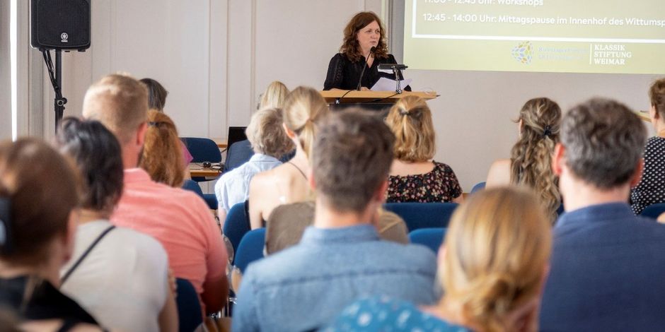Die Klassik Stiftung Weimar veranstaltet jährlich einen Fachtag zur Kulturellen Bildung, der Lehrkräfte und Kulturvermittler*innen zusammenbringen und vernetzen soll. Jeder Fachtag widmet sich einem aktuellen Schwerpunkt der kulturellen Bildung – von digitalen Technologien über Fragen der Literaturvermittlung bis zu neuen Vermittlungsformen. Auf dieser Seite finden Sie einen Überblick über die vergangenen Veranstaltungen – über die jeweiligen Links gelangen Sie zu den einzelnen Jahrgangsseiten mit Thema, Programm und weiterführenden Materialien.