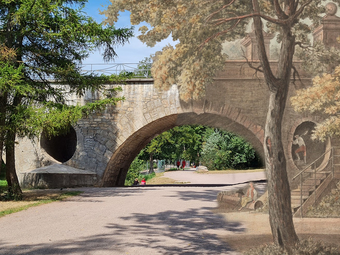 Unser digitales Angebot in der App Weimar+ beschäftigt sich mit den Blickachsen im Park an der Ilm. Bereits um 1800 wurden diese Sichten, wie jene vom Stern zur Schlossbrücke oder vom Luisenkloster zum Kirchturm Oberweimar vom Maler Georg Melchior Kraus dokumentiert. Jüngere Sichtbeziehungen bestehen erst seit 2009, welche durch Bodenplaketten markiert sind. Durch klimatische Veränderungen, Jahreszeiten oder gestalterische Arbeiten unterliegen die Sichtbeziehungen einem stetigen Wandel. In der App Weimar+ können Sie jetzt mit einer Fotospende mithelfen, diesen Wandel für zukünftige Forschungen zu dokumentieren und mehr über die angelegten Sichten zu erfahren.