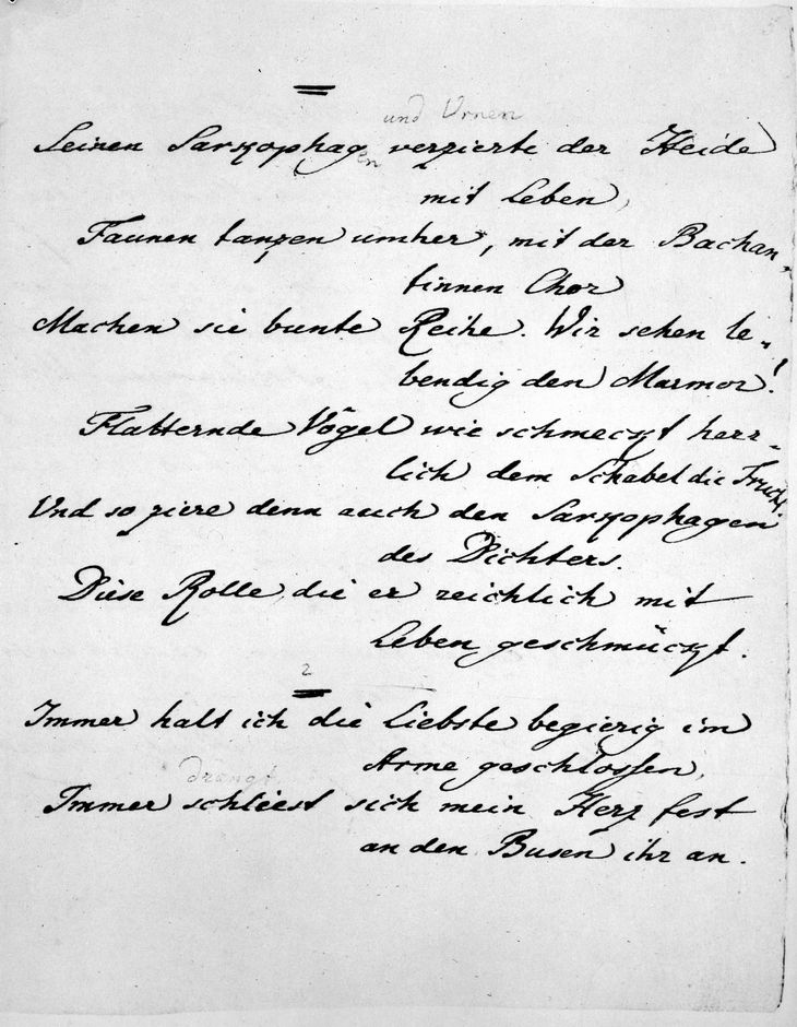 Handschrift Venezianische Epigramme "Seinen Sarkophag ..." K: Goethe, Johann Wolfgang von