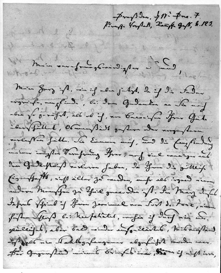 Handschrift Birief Heinrich von Kleist an Chr.M. Wieland am 17. Dec. 1807 1. Seite des Briefes Signatur: GSA Wieland III, M II