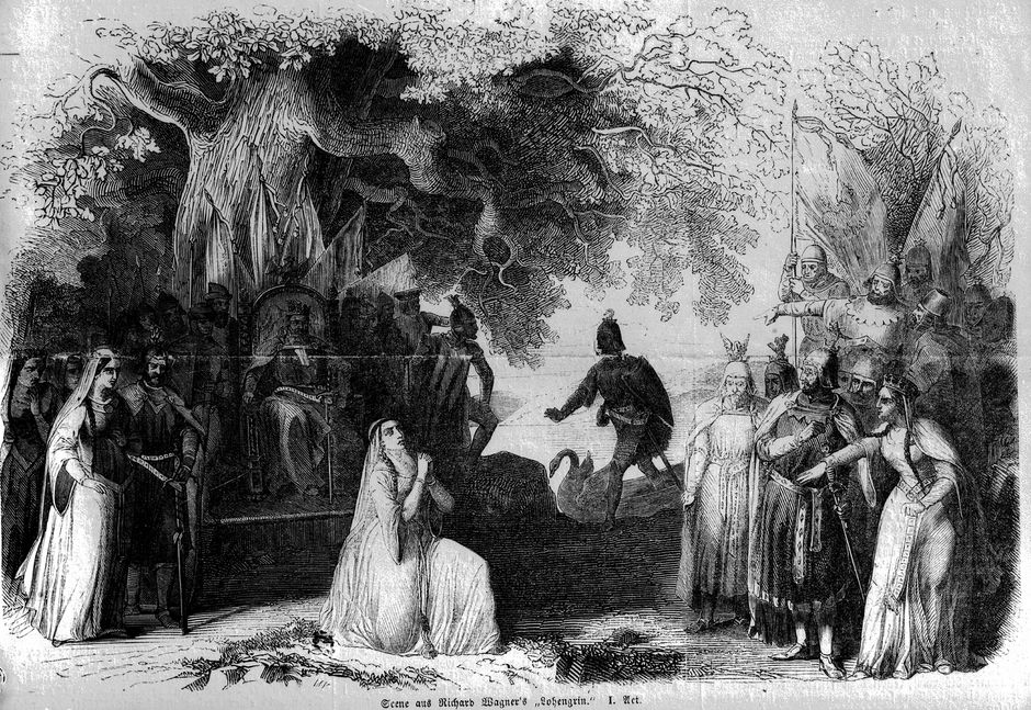 Richard Wagner Szene aus Lohengrin Uraufführung in Weimar 1850 Stich Künstler: unbekannt