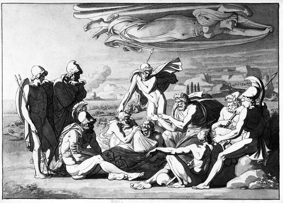 Rat der Griechen vor Troia, "Berathung der griechischen Helden vor Troja; über der Versammlung schwebt die Nacht"