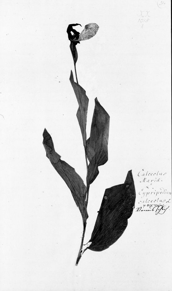 Gelber Frauenschuh, Orchidaceae "Calceolus⁄ Mariae.⁄ L. Cypripedium⁄ calceolus." "Venusschuhe" Cypripedium Calceolus L.⁄det. Hansen 1913