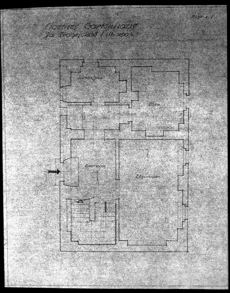 Zeichnung Goethes Gartenhaus im Park an der Ilm Weimar Grundriss Erdgeschoss