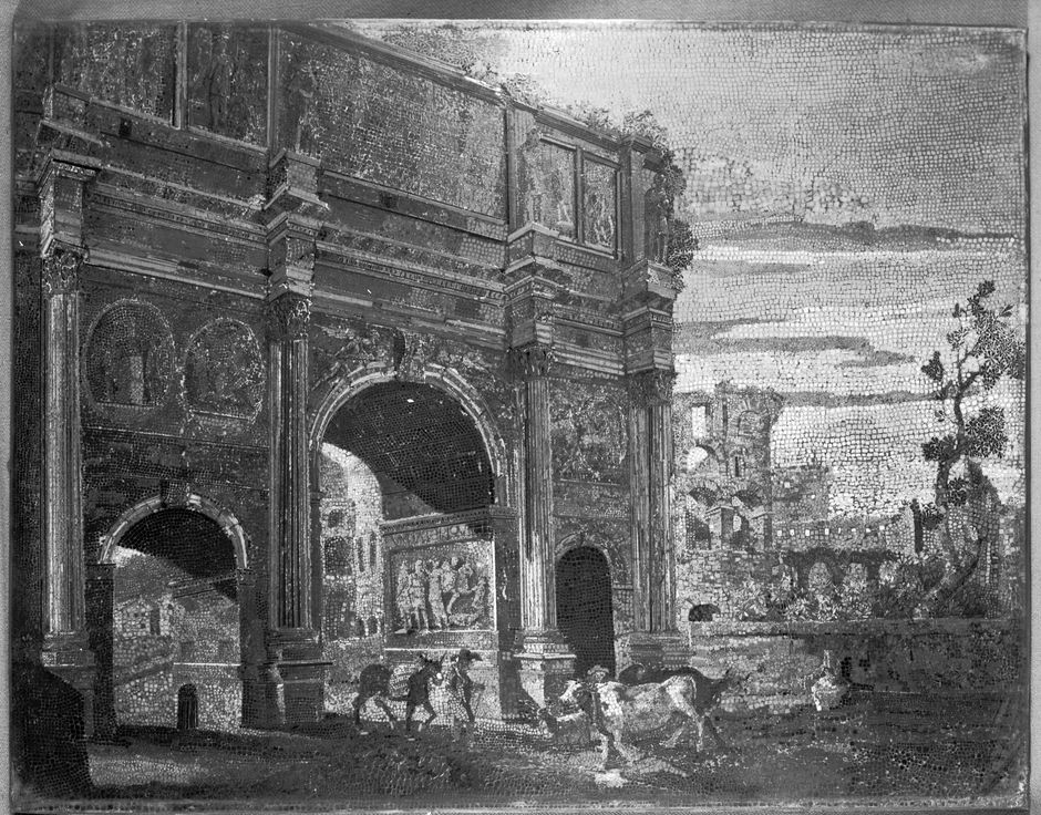 Mosaik des Konstantinbogens in Rom mit Wappen von Papst Pius VI. (Reg. 1775-1799)