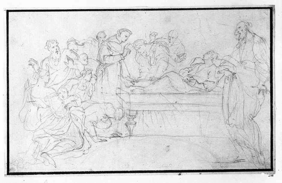 - Mönch bei einer Wunderheilung, "2 Blatt flüchtige Bleistiftskizzen: Wunder eines Heiligen"