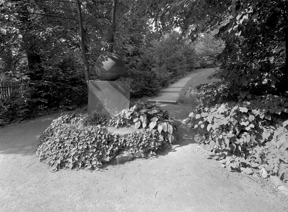 Stein des guten Glücks im Garten von Goethes Gartenhaus im Park zu Weimar