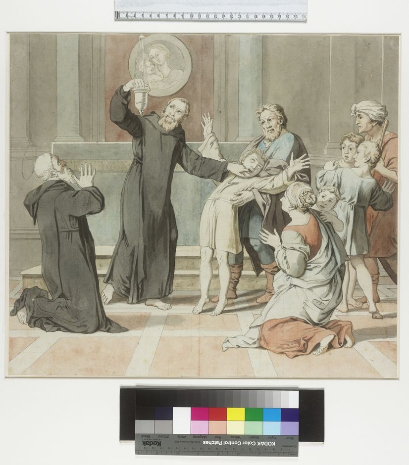 - Heiliger Nilus von Rossano und Heiliger Bartholomäus heilen einen Besessenen mit dem Öl aus der Lampe des Muttergottesbildes von Grottaferrata, "Der heil. Nil treibt den Dämon aus dem Sohn des Polyeuc