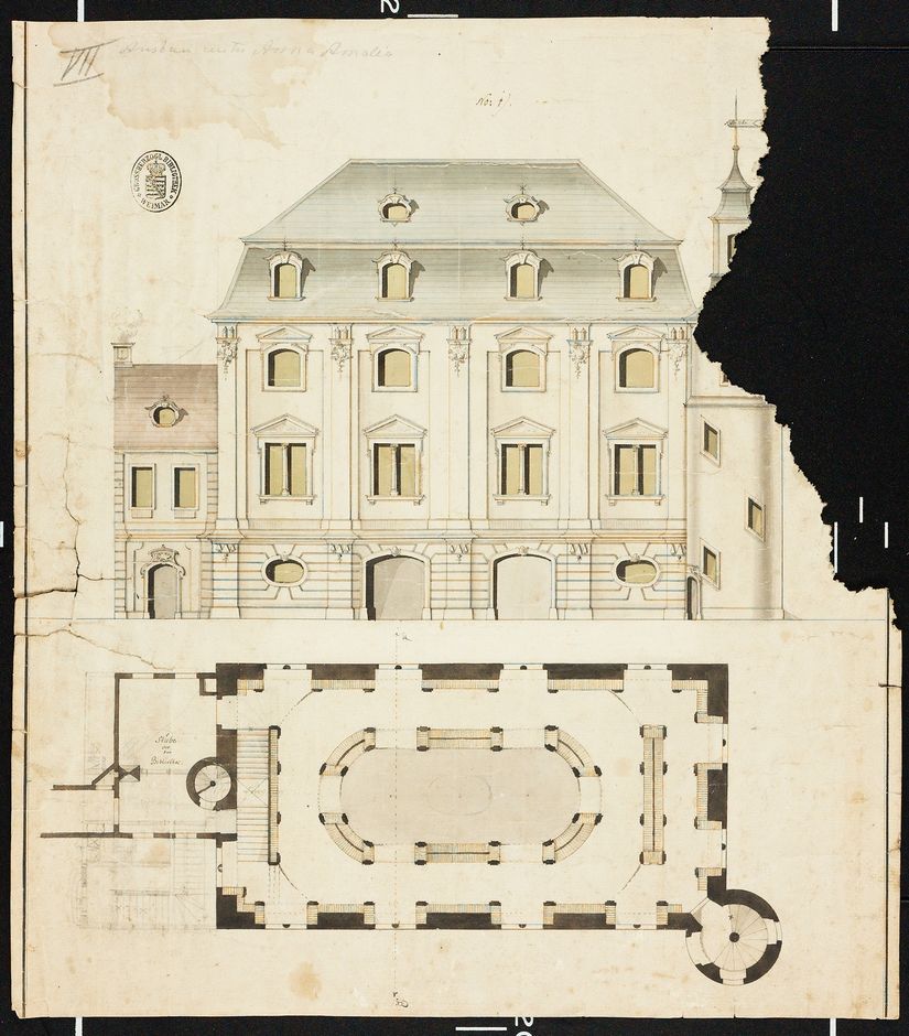 fingierter Titel: [Dokumentation: 13 Pläne, Ansichten etcet. zum Grünen Schloß, Stammgebäude der Bibliothek Anna Amalia]