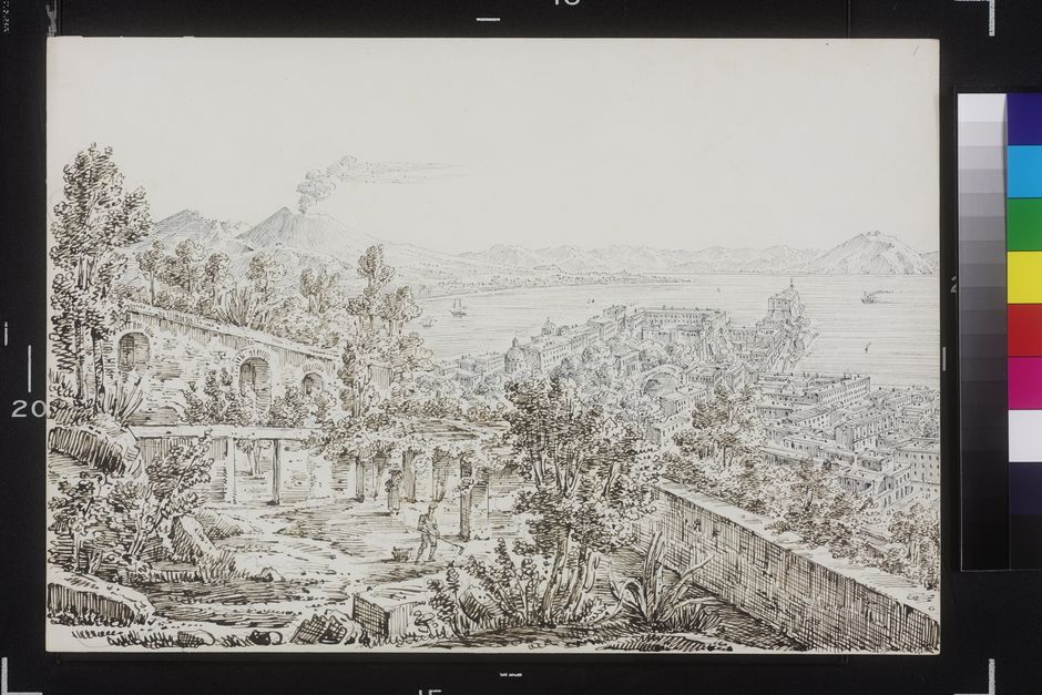 Folgeblatt 1, Ansicht von Neapel mit Vesuv und alten Mauern