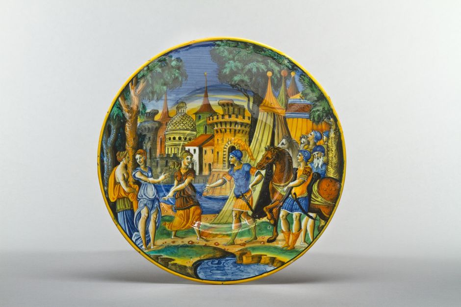 - Teller mit tiefem Spiegel: Gnaeus Marcius Coriolanus begegnet als Heerführer der Volsker seiner Frau und seiner Mutter