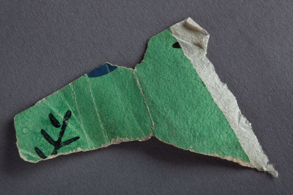 Fragment der Originaltapete mit Schweinfurter Grün aus Schillers Arbeitszimmer