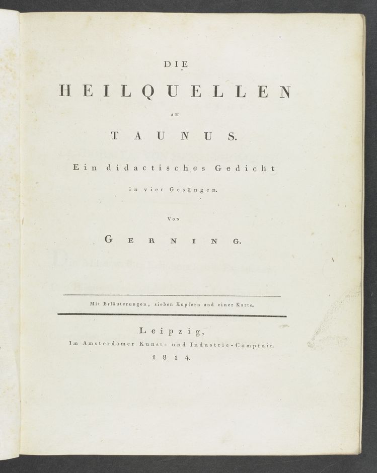 - Die Heilquellen am Taunus. Ein didact. Gedicht in 4 Gesängen. Mit Erl., 7 Kupfern u. 1 Kt.