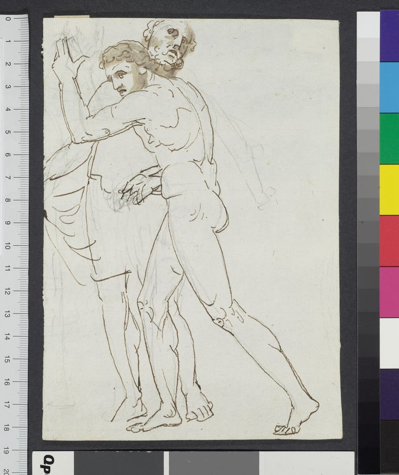 Folge von 85 Zeichnungen: Jugendlicher männlicher Akt, gegen bekleideten älteren Mann gelehnt
