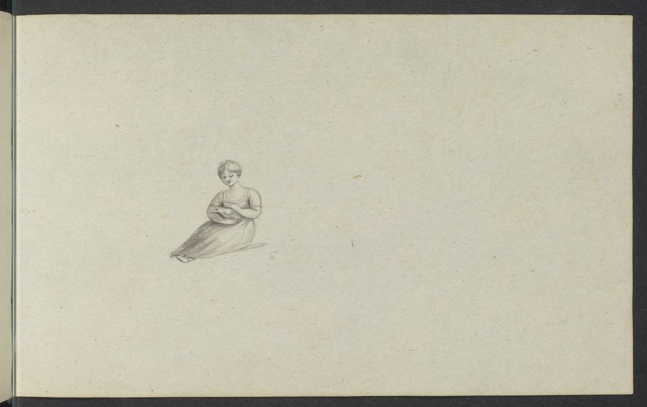 Sitzendes Mädchen mit Taube. Blatt 29 aus dem Roten Reisebüchlein