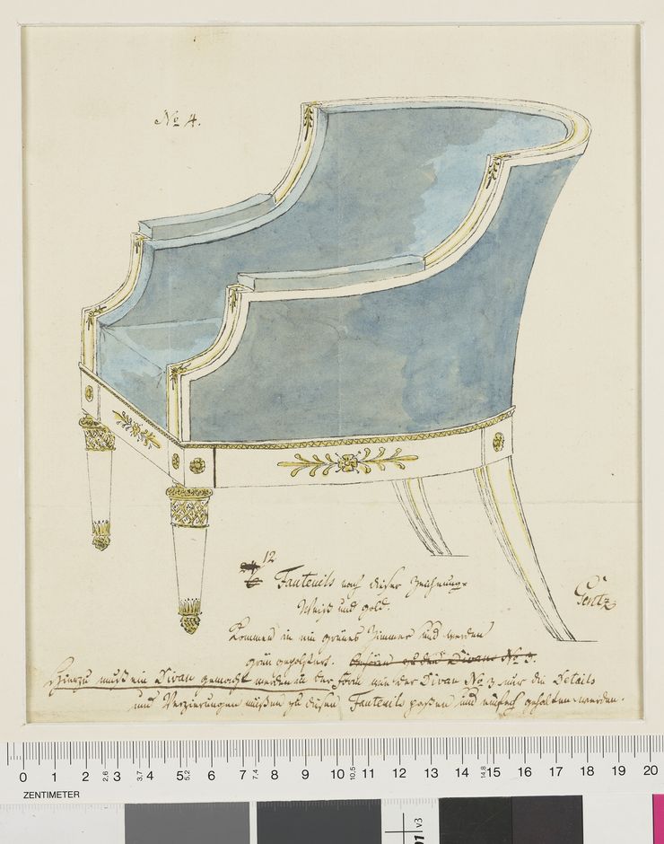Weimar Residenzschloß Möbelentwürfe. Entwurf zu einem Sessel mit blauem Bezug
