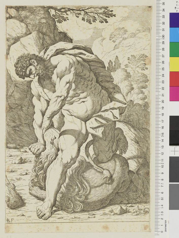 Herakles und der Kithaironische Löwe, "Hercules tödtet den Nemäischen Löwen"