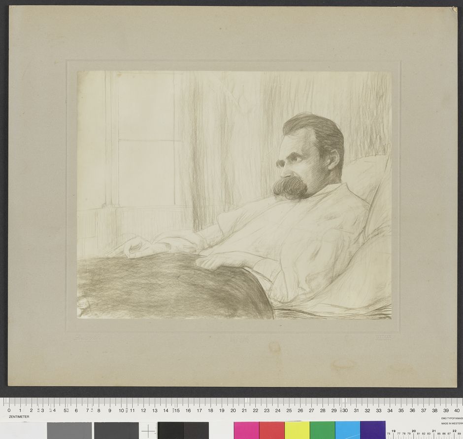 Hersteller: Weimar, Photoatelier Louis Held Künstler der Vorlage: Olde, Hans (1855 - 1917) Dargestellte Person: Nietzsche, Friedrich (1844 - 1900), Philosoph Hersteller: Held, Louis (1.12.1851 - 17.4.1927), Fotograf