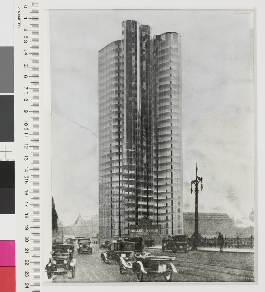 Fotomontage: Entwurf für ein Hochhaus ("Glashaus") in der Friedrichstraße, Berlin