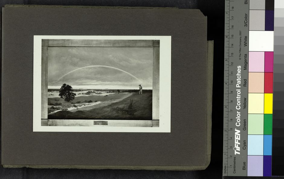Schlossmuseum Weimar 345993 Inventar-Nr.: G 35 Künstler: Friedrich, Caspar David (1774-1840) Gegenstand: Landschaft (von Rügen) mit einem Regenbogen, Schafherde und Hirt. Datierung: um 1810 Technik: Öl auf Leinwand Material: Maße: 59,0 x 84,5 cm (an