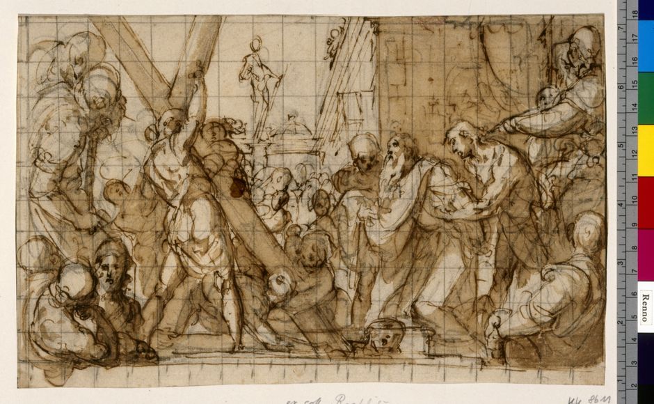 Aufrichtung des Kreuzes zu einem Andreasmartyrium (recto) Flüchtige Studie zu einem Feldherrn (verso)