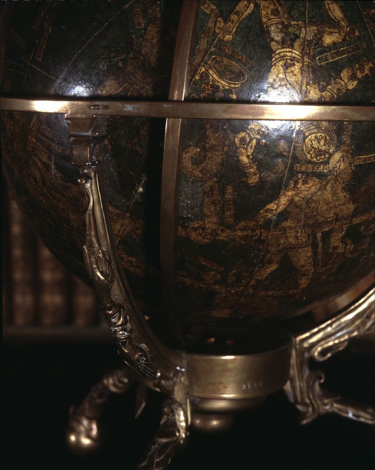 Titel: [Himmelsglobus] ⁄ [Johannes Schöner] Sonst. Personen: Schöner, Johannes *1477-1547* Erschienen: [Nürnberg], s.a. [vor 1534] Umfang: 1 Globus. : Holzschn. ; Diam. 27 cm Anmerkung: Mit 1 Horizontring aus Messing. - Mit 1 Meridianring aus Messing