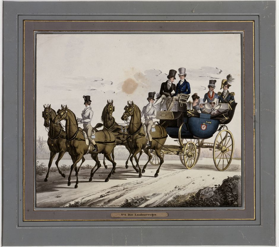 Titel: Charakteristische Kutschen des frühen 19. Jahrhunderts ⁄ F. de Maleck