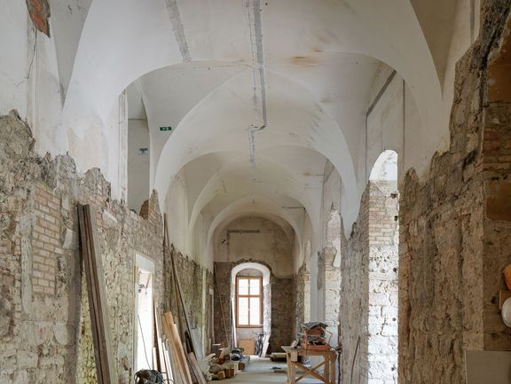 This is where the future entrance to the museum areas – the so-called arcade - will be situated. The arcade will serve as a publicly accessible reception area where visitors can obtain initial information about the castle’s architectural and building history.