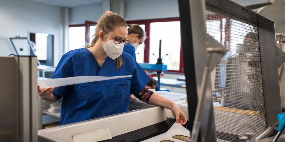 The Academic Training Workshop is part of the collections department of the Herzogin Anna Amalia Bibliothek. Its task is to preserve the library's holdings for use and archiving. After the library fire in 2004, volume procedures were developed and standardised for printed materials and manuscripts that were severely damaged by heat and water. By 2023, these procedures had already been applied to over 1.1 million sheets.