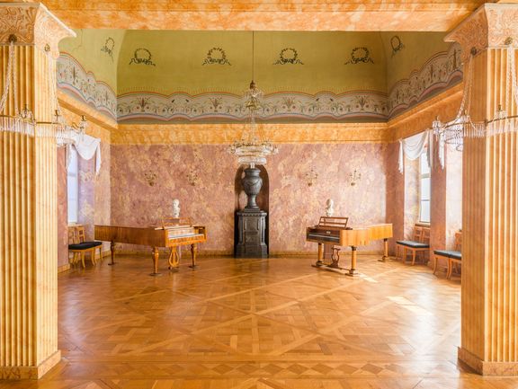 The tour takes visitors through the Duchess’s former parlours and representative rooms. The furnishings are typical of the living culture around 1800 and shed light on Anna Amalia’s wide-ranging interests. At the end of her regency in 1775, she devoted herself to music, theatre and drawing. Numerous paintings and drawings depict members of her family and the many guests whom she invited to social gatherings and evening events.