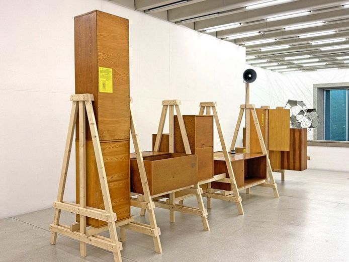 The three-part exhibition is supplemented by the installation “Monument to Honesty” on the mezzanine floor of the Bauhaus Museum Weimar. It was created from the famous Type 602 furniture by the Bauhaus artist Franz Ehrlich (whose last name means “honest”). The work by the artist trio Friedrich von Borries, Frieder Bohaumilitzky and Jens-Uwe Fischer deconstructs the complex biography of the Bauhaus architect, graphic artist and designer Ehrlich (1907-1984), who was a resistance fighter and Buchenwald prisoner, but also an SS architect, a Stasi informant and impostor. Based on his background, the monument questions the dominant self-images of the present: How honest are we?