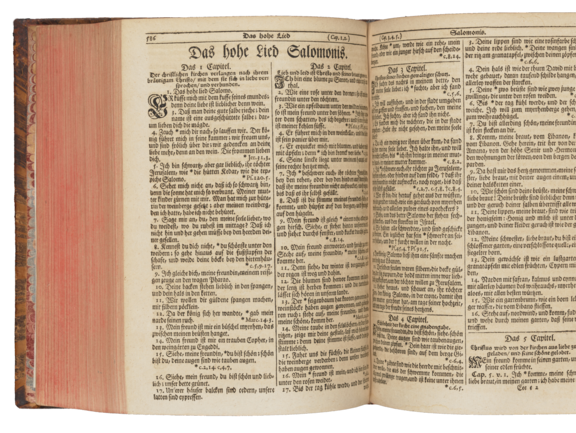 Neben Bibeldrucken befinden sich auch Buchhandschriften und vor-lutherische, deutschsprachige Bibeln aus der Frühzeit des Buchdrucks (Inkunabeln) im Bestand der Herzogin Anna Amalia Bibliothek.