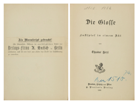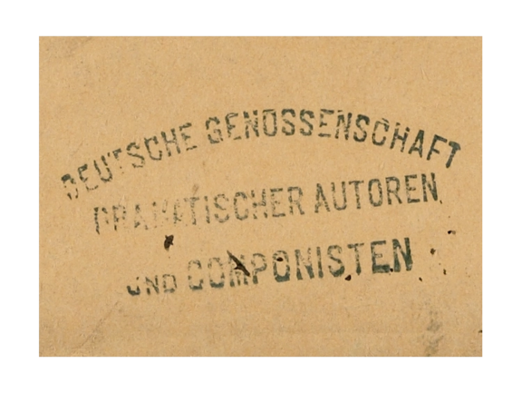 Die Theatertexte tragen zum Teil die Bezeichnungen „Bühnenmanuscript“ oder „Bühnenmanuskript“ im Untertitel. Auf extra eingeklebten Etiketten ist die Theater-Agentur oder die Verlags-Firma genannt, die angewiesen war, den Vertrieb und die Verwertung des Theatertextes stellvertretend für den Autor zu regeln (z.B. die Theater-Agentur Felix Bloch, Berlin, die Verlags-Firma A. Entsch oder die Agentur der Deutschen Genossenschaft dramatischer Autoren und Componisten).
