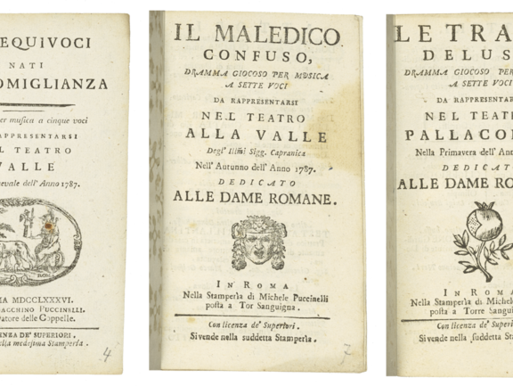 In Goethes Privatbibliothek finden sich 23 italienische Libretti. Der Schriftsteller sammelte sie während seiner Italienreise. Sie sind zusammengebunden in drei Bänden als „Italienische Textbücher“ erhalten.