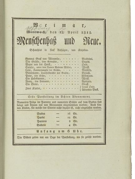 Theaterzettel finden sich auch im umfangreichen Theaterbestand des Goethe- und Schiller-Archivs.