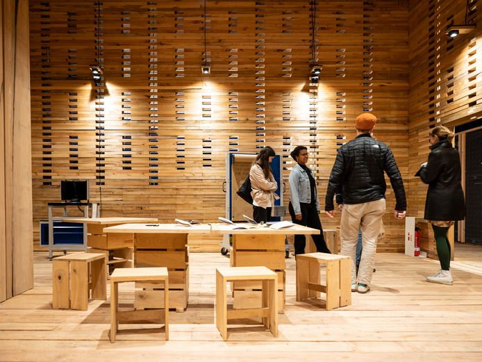Le Co-laboratoire est entièrement constitué de bois provenant d'arbres du Parc sur l’Ilm et du Parc du château du Belvédère. Le bois qui a dû être abattu en raison de divers dommages retrouve ici une nouvelle vie. Le Co-laboratoire réutilise le matériau du Laboratoire vert de 2021. Le pavillon a été conçu et réalisé par le bureau d'architectes "Studio Booom".