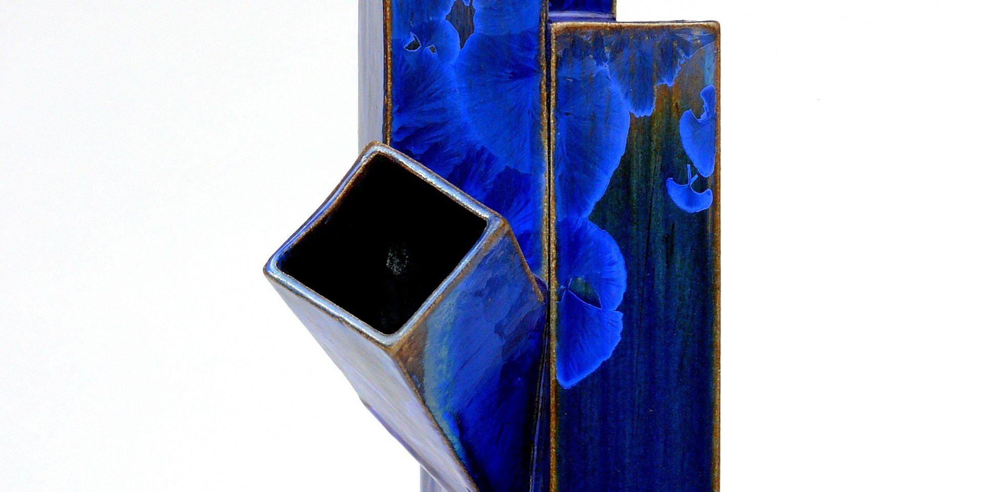 Grès, argile, glaçure cristalline, oxyde de cobalt, 37 x 14 x 14 cm