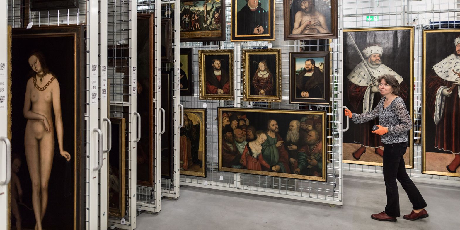 L'exposition a lieu dans la salle Renaissance, qui a été construite quelques années seulement après la mort de Cranach et qui offre aux objets un environnement contemporain. La salle fait partie du noyau le plus ancien du bâtiment, qui a été construit comme château Renaissance jusqu'en 1569. En tant que partie d'une résidence princière, cette salle est étroitement liée aux Ernestins et aux espaces seigneuriaux de l'époque situés à proximité immédiate : l'église municipale Saint-Pierre-et-Paul de Weimar avec l'imposant retable d'autel de Lucas Cranach le Jeune ainsi que le château de la résidence.