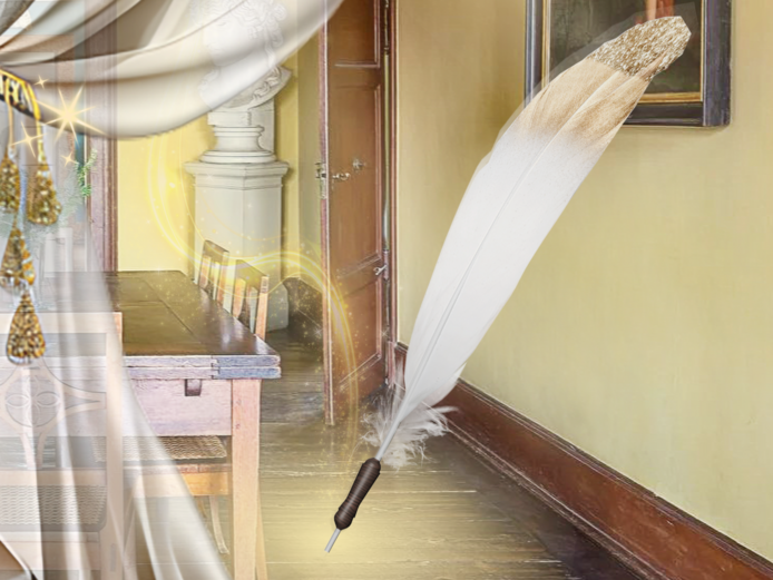 Das Erlebnis des gesamten Goethe-Hauses wird durch einen Federkiel bereichert, der den Besuchenden von einem Ausstellungsobjekt zum nächsten führt und ihnen die Möglichkeit bietet, mit den Exponaten zu interagieren und mehr über sie zu erfahren.