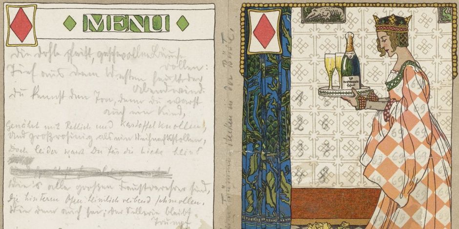 Eine weitere Gruppe bilden originelle Gedichthandschriften, die von einer Niederschrift der Dichterin Anna Louisa Karsch, genannt die Karschin, über eine „Klecksographie“ von Justinus Kerner bis hin zu bisher unveröffentlichten Versen von Joachim Ringelnatz auf einer Reklamekarte der Sektkellerei Kupferberg Gold und einem Stenogramm von Erich Kästner reichen.