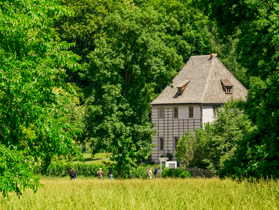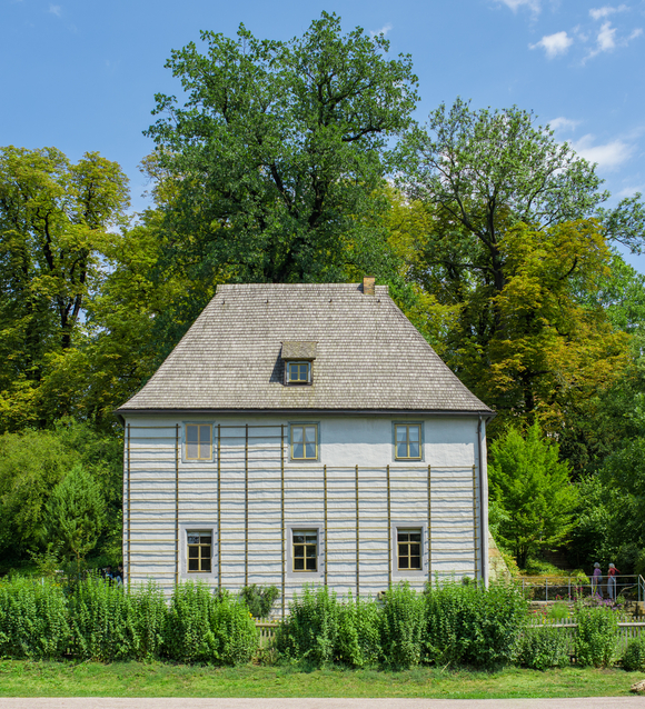 Das Gartenhaus am Rande des Parks an der Ilm war 1776 Goethes erster eigener Wohnsitz in Weimar. Hier schrieb er die Ballade vom „Erlkönig“ und das Gedicht „An den Mond“. Im Alter wurde das Haus, das mit originalen Möbeln wie dem Stehpult und „Sitzbock“ ausgestattet ist, ein wichtiger Rückzugsort für Goethe.