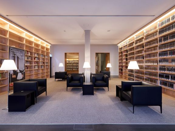 Das Erdgeschoss bietet aktuelle Tageszeitungen und wechselnde Präsentationen. Es ist kostenfrei und ohne Bibliotheksausweis zu besichtigen.