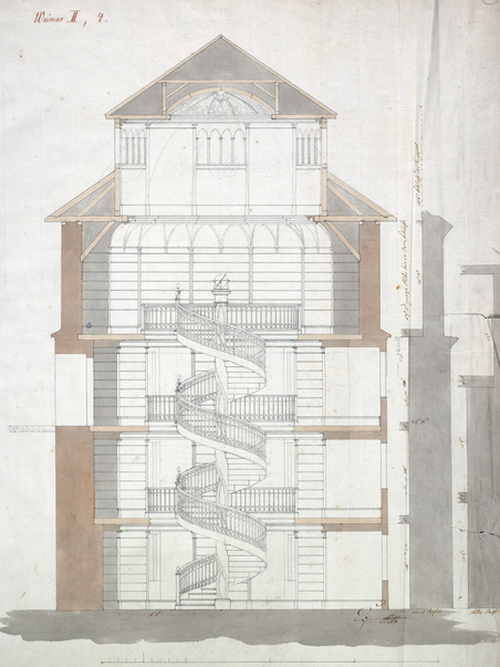 Seit 1824 diente der neugotische Bibliotheksturm, ein ehemaliger Wehrtum der Stadtmauer, als Aufbewahrungsort für die Sammlung. 6.000 Karten, 5.200 Bücher und 200 Handschriften, 27 Globen und 11 Festungsmodelle sind bis heute erhalten und werden zum Teil noch immer der historischen Aufstellung entsprechend im Turm aufbewahrt.