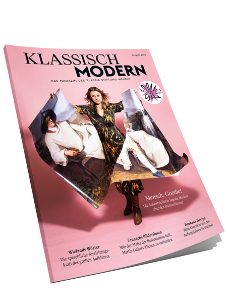 Mit dem Magazin „klassisch modern“ erhalten Sie Geschichten aus der Stadt der Dichter und Denker, exklusive Interviews mit Kurator*innen und spannende Reportagen mit Blicken hinter die Kulissen der größten Kulturstiftung Deutschlands.