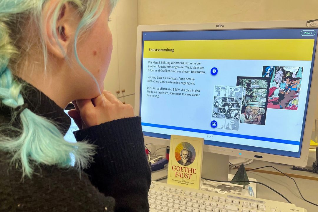 Am Beispiel der Weimarer Faustsammlung wird hinterfragt, wie literarische Figuren kanonisch und später zu Elementen der Popkultur werden. In einer anschließenden Arbeitseinheit setzen sich die Schüler*innen mit speziellen Themen wie z. B. „Faust in der bildenden Kunst“ oder „Faust in der Populärkultur der Gegenwart“ vertiefend auseinander.