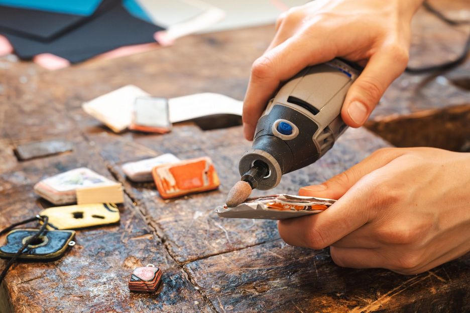In unserer Weihnachtswerkstatt nutzen wir Papierreste aus dem Museumsalltag und entwickeln aus ihnen ein ganz neues Material. Denn zu einem Stapel verklebt und fest gepresst, wird aus Altpapier ein Werkstoff, der sich mit Schleifmaschine, Dremel und Feile verarbeiten lässt. So entstehen aus Altpapier buntgemusterte Weihnachtsgeschenke.