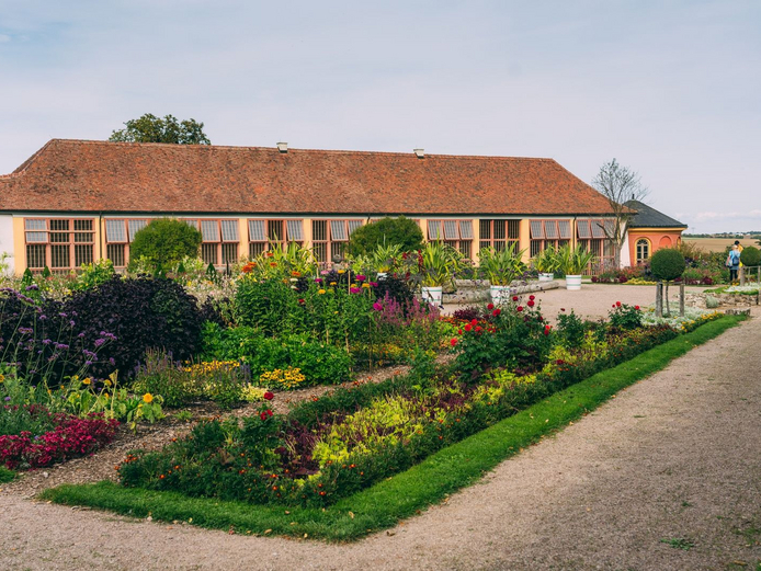 Die Orangerie entstand zeitgleich mit dem Schloss und der ursprünglichen barocken Parkanlage und setzt sich aus mehreren auch später ergänzten Gebäuden und Freiflächen zusammen. Der Orangeriehof, auch Parterre genannt, ist die Aufstellfläche für die zahlreichen Kübelpflanzen. Er ist ganzjährig frei zugängig.