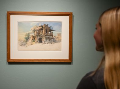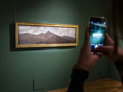 Besucher*innen vor dem Gemälde „Huttens Grab“ in der Sonderausstellung „Caspar David Friedrich, Goethe und die Romantik in Weimar“, © Klassik Stiftung Weimar / Foto: Thomas Müller