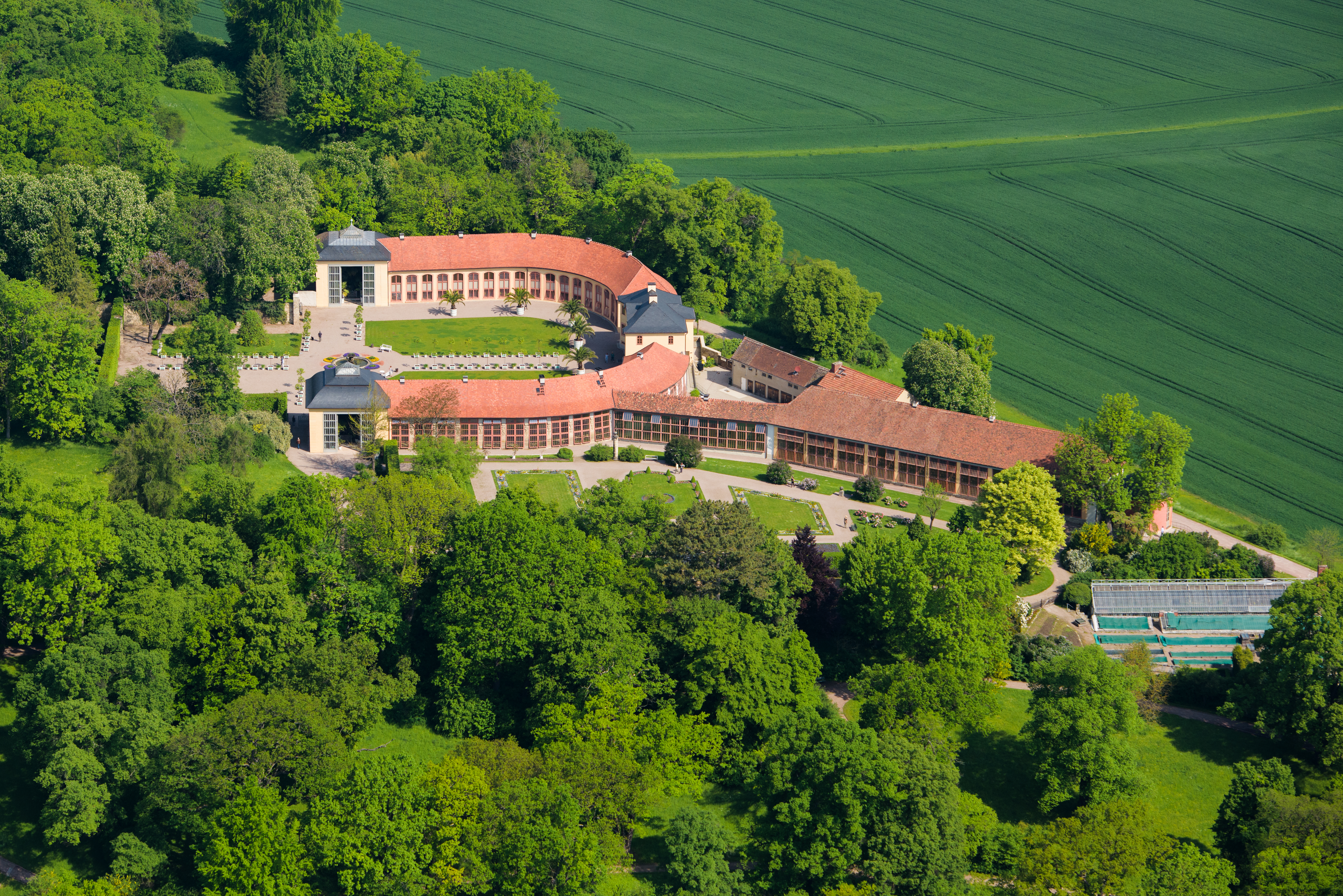 Luftaufnahme der Orangerie im Schlosspark Belvedere, Foto: Candy Welz © Klassik Stiftung Weimar, Klassik Stiftung Weimar