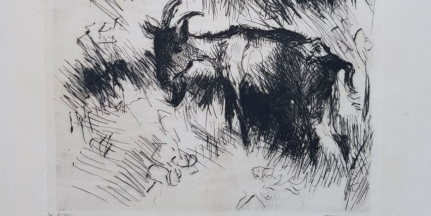 Lovis Corinth, Der Ziegenbock, aus dem Mappenwerk „Am Walchensee“, 1920, Kaltnadelradierung, Klassik Stiftung Weimar, Museen, Schenkung HHW